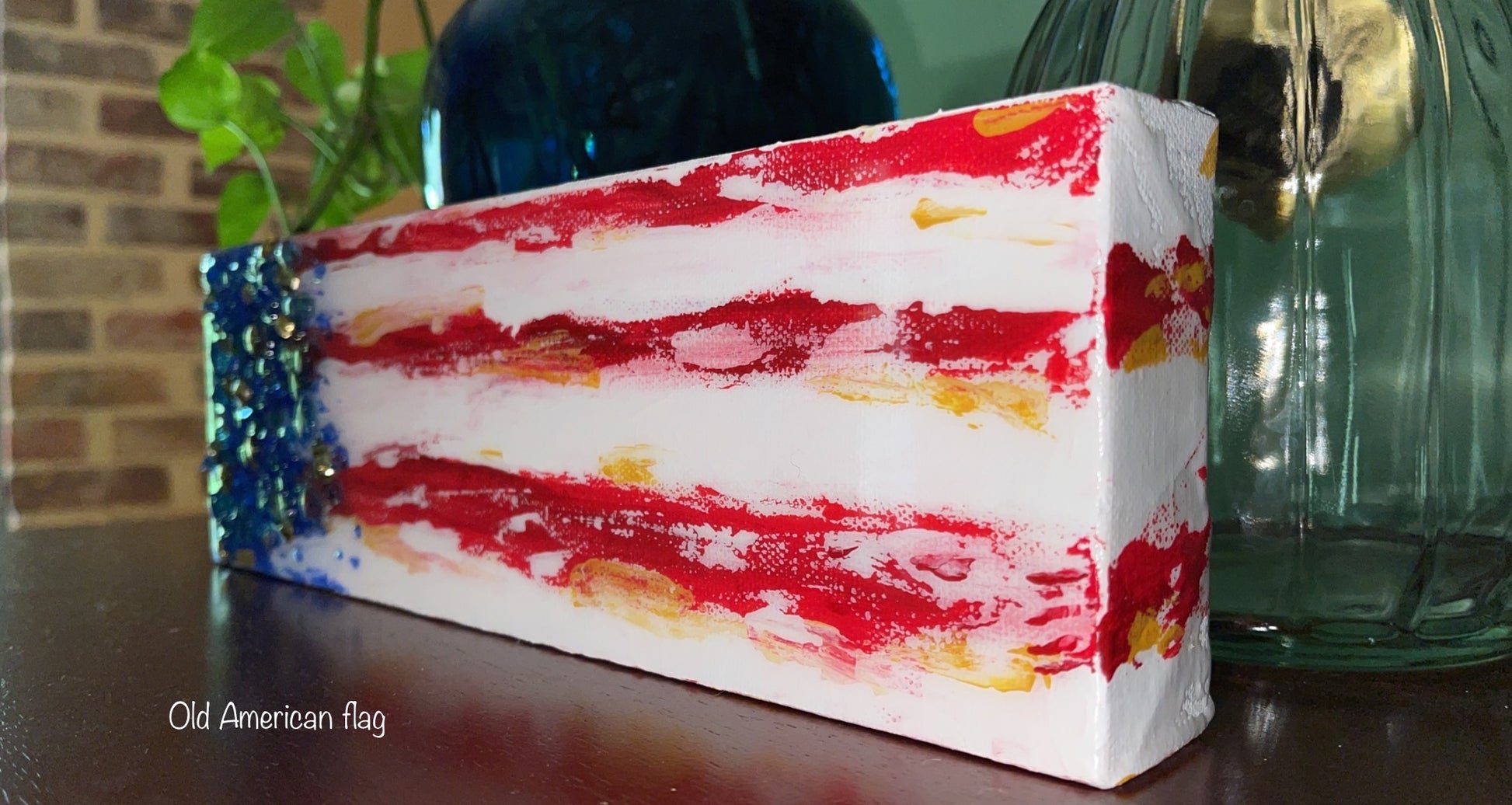 These beautiful US flag is hand paint with acrylics, crushed glass, gold embellishments and sealed with epoxy resin. Each piece in this series is created on a 4x12 inch canvas. Each piece is ready to hang for everyone to admire.
