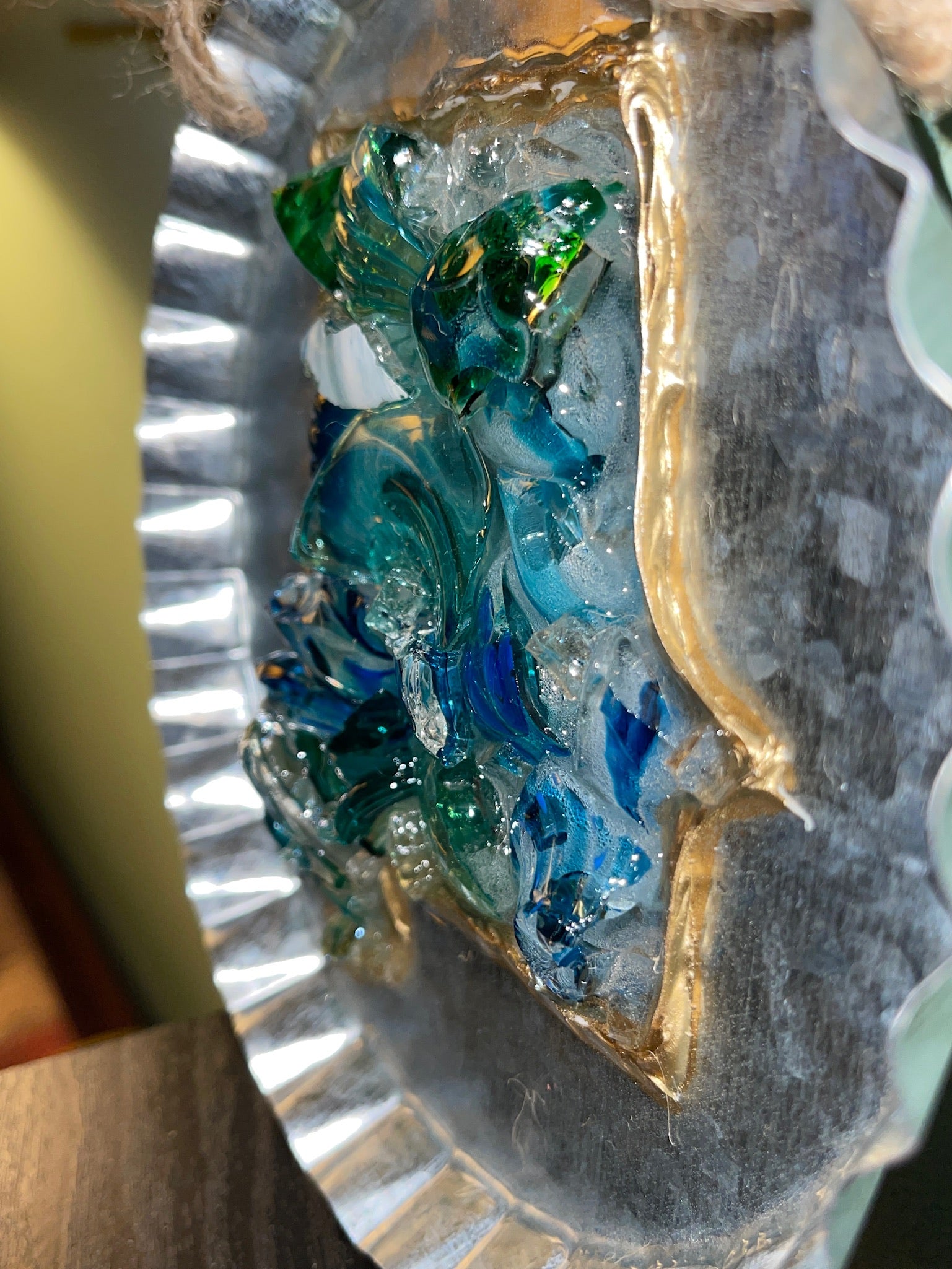 Custom Orders - will be of the same design but the paint colors, shells or types of glass may vary based on availability.