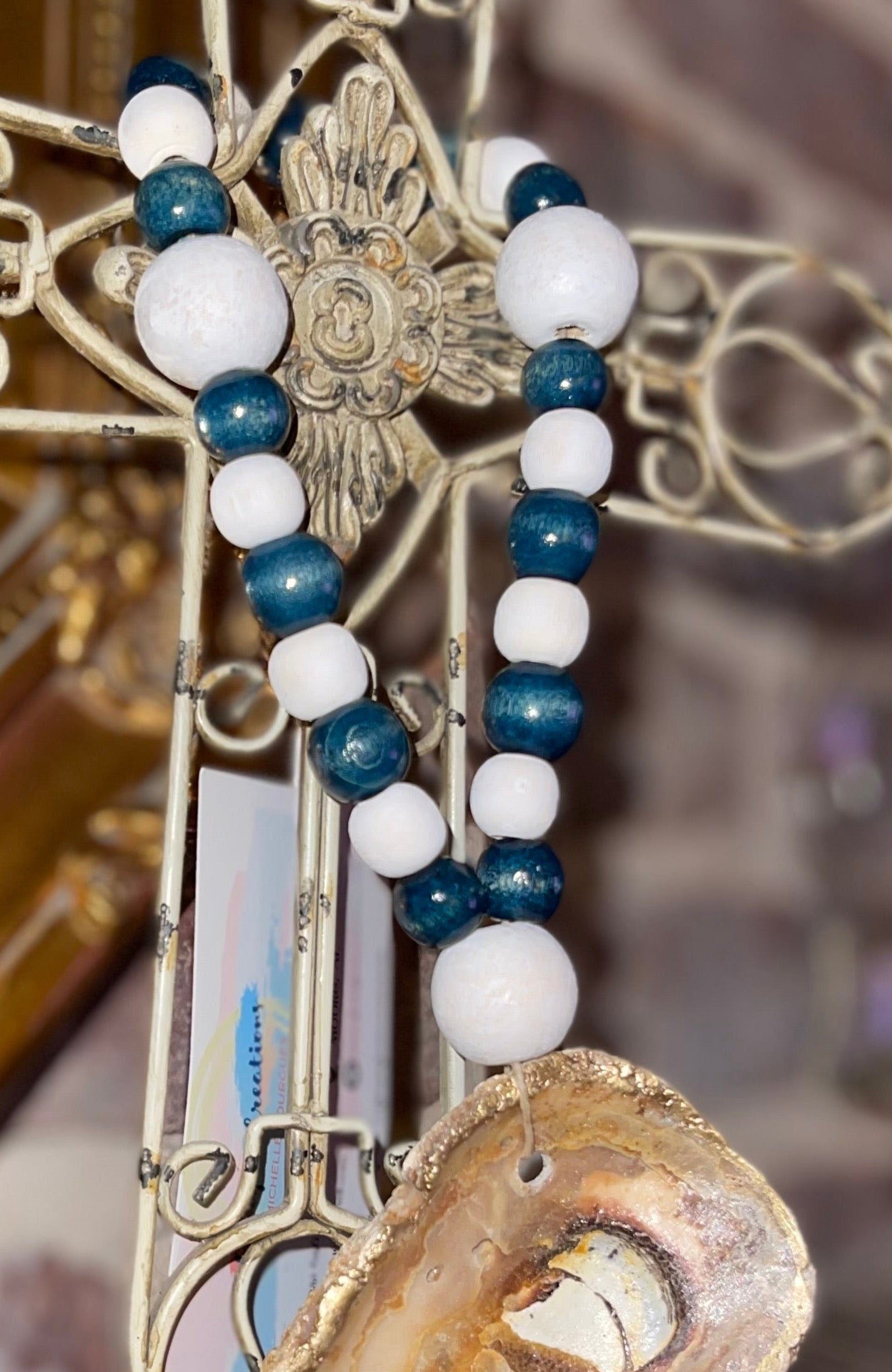 These beautiful OYS shell blessing beads will certainly give you the urge to go coastal! Each shell is carefully chosen, cleaned and hard coated for a glossy finish. The beads are hand painted and strung with jute for extra durability. These are lovely to place on your favorite devotional, hang on a doorknob or over your favorite candle!