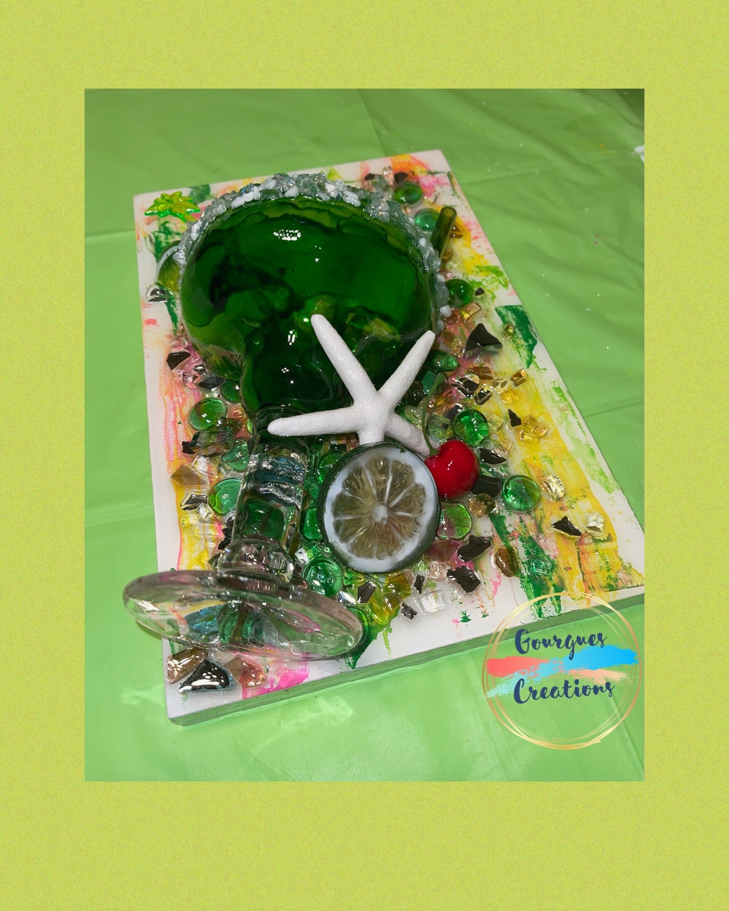 Custom Orders - will be of the same design but the paint colors, shells or types of glass may vary based on availability.