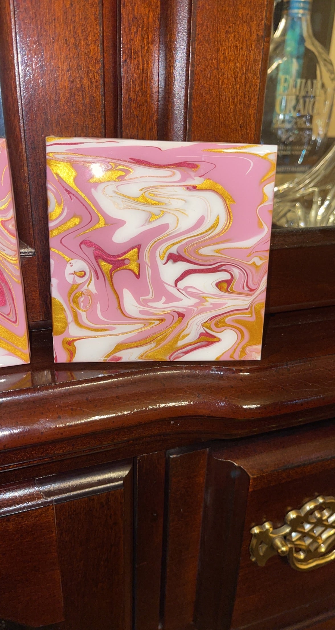 Set of 4 ceramic tile coasters that are made from resin acrylic pours. These are perfect for anyone. If you need specific colors, please reach out. We love custom orders!