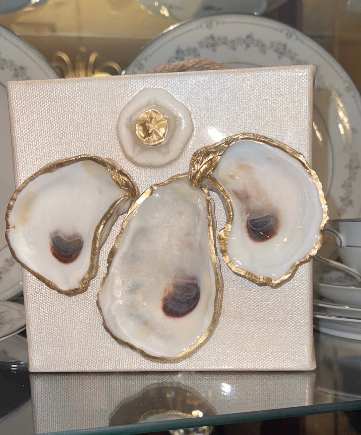 These beautiful gulf coast OYS shell angels are ready to hang or it is a great shelf sitter.