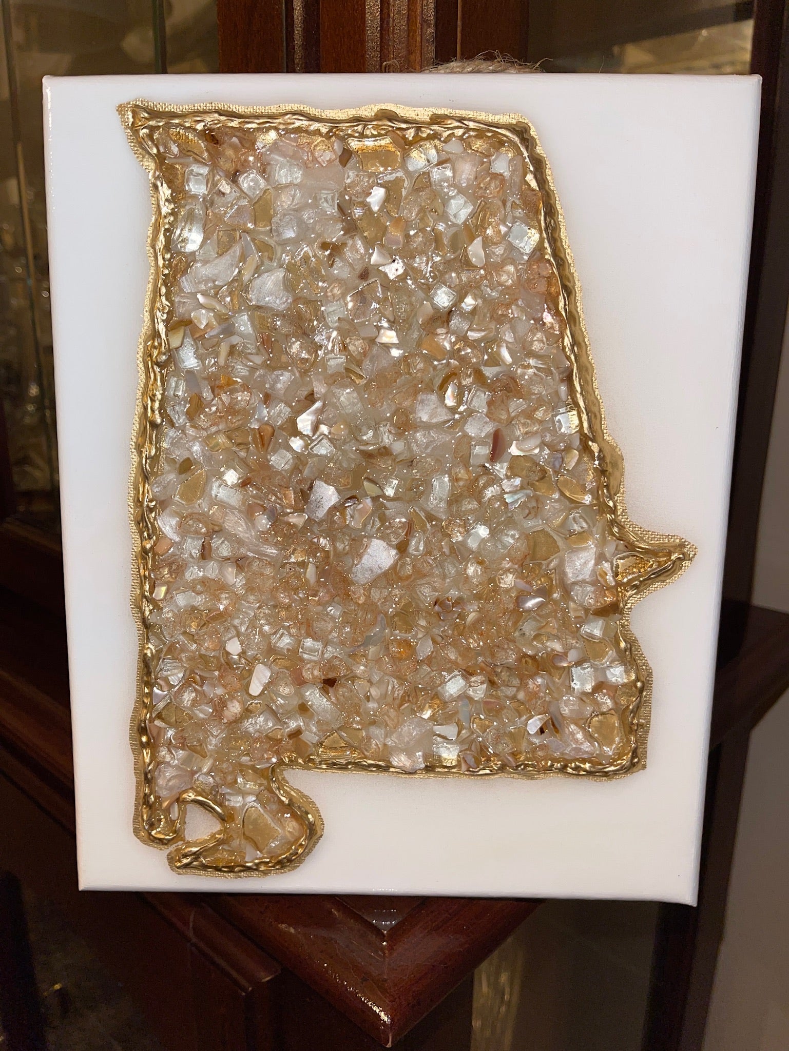 Custom Orders - will be of the same design but the paint colors, shells or types of glass may vary based on availability.